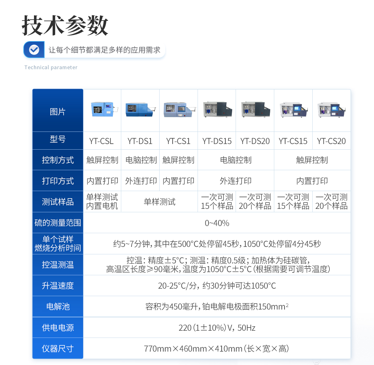 | 1.硫的測(cè)量范圍:0—40%. | 2、 單個(gè)試樣燃燒分析時(shí)間:約5--7分鐘,其中在500℃處停留45秒,1050℃處停留4分45秒。 | 3、控溫:精度±5℃。測(cè)溫:精度0.5級(jí);加熱體為硅碳管,高溫區(qū)長度≥90毫米,溫度為1050℃±5℃(根據(jù)需要可調(diào)節(jié)溫度) | 4、 密度:如下表規(guī)定: St,% 重復(fù)性St,ad,% 再現(xiàn)型St,d,%<1 1="" 0.05="" 0.10="">4 0.20 0.30 | 5、升溫速度:20--25℃/分,約30分鐘可達(dá)1050℃。 | 6、電解池:容積為450毫升,鉑電解電極面積150mm2 。 | 7、供電電源:220(1±10%)V,50Hz. | 8、儀器尺寸(mm) 長×寬×高(770×460×410) |