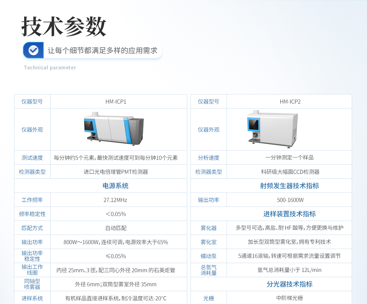 1、進(jìn)樣系統(tǒng)    1.1 加長(zhǎng)型霧室,保證高靈敏度的情況下有效降低背景噪聲,低記憶效應(yīng)。    1.2 **同心圓霧化器,霧化效率高、重復(fù)性好,記憶效應(yīng)弱,可直接自吸進(jìn)樣。    1.3 快速拆卸式炬管,搭配自主研發(fā)的炬管工裝,可一秒實(shí)現(xiàn)炬管的準(zhǔn)確定位,減少因更換 炬管帶來的位置誤差影響測(cè)試性能。    1.4 蠕動(dòng)泵為 5 通道 16 滾軸全自動(dòng)設(shè)計(jì),蠕動(dòng)泵轉(zhuǎn)速連續(xù)可調(diào)。確保穩(wěn)定進(jìn)樣的同時(shí),可 支持進(jìn)樣、排廢、在線內(nèi)標(biāo)和其他試劑進(jìn)樣管(氫化物發(fā)生器)同時(shí)運(yùn)行。    1.5 分腔體式進(jìn)樣系統(tǒng),炬管和霧室在不同的空間內(nèi),減少炬管高溫對(duì)霧化的影響,也可以 直接觀察樣品的進(jìn)行,便于實(shí)時(shí)排除異常情況。    1.6 多種類型的霧化器、霧室及炬管可選,可實(shí)現(xiàn)有機(jī)、高鹽、高靈敏、耐 HF 酸等不同進(jìn) 樣需求,方便更換與維護(hù)。    1.7 集成氣路全自動(dòng)控制,采用精密質(zhì)量流量控制器控制多路氣體流量,精度 0.01L/min。    1.8 缺氣氣保護(hù)功能,儀器在氣源耗盡的情況下自動(dòng)熄火,并通過嗡鳴器實(shí)時(shí)發(fā)出報(bào)警聲音。    1.9 火焰視頻監(jiān)測(cè),儀器配置了靈敏度高的火焰?zhèn)鞲邢到y(tǒng),以及可視化視頻監(jiān)測(cè)攝像頭, 可以實(shí)時(shí)觀測(cè)燃燒室火焰狀態(tài),并在熄火時(shí)自動(dòng)關(guān)閉射頻電源,保護(hù)儀器重要部件。    1.10 可視化的儀器運(yùn)行狀態(tài)監(jiān)控模塊,可對(duì)儀器各組成部件的運(yùn)行情況進(jìn)行監(jiān)測(cè),判斷故 障原因,便于各部件的正常運(yùn)行。