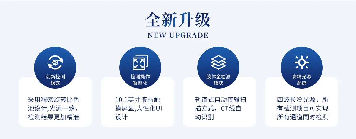 4、四波長冷光源,6個檢測通道,每個通道均配置410、520、590、630nm波長光源,標配**的光路切換裝置,專業光路切換功能可實現*多64波長,并且所有檢測項目可實現所有通道同時檢測。