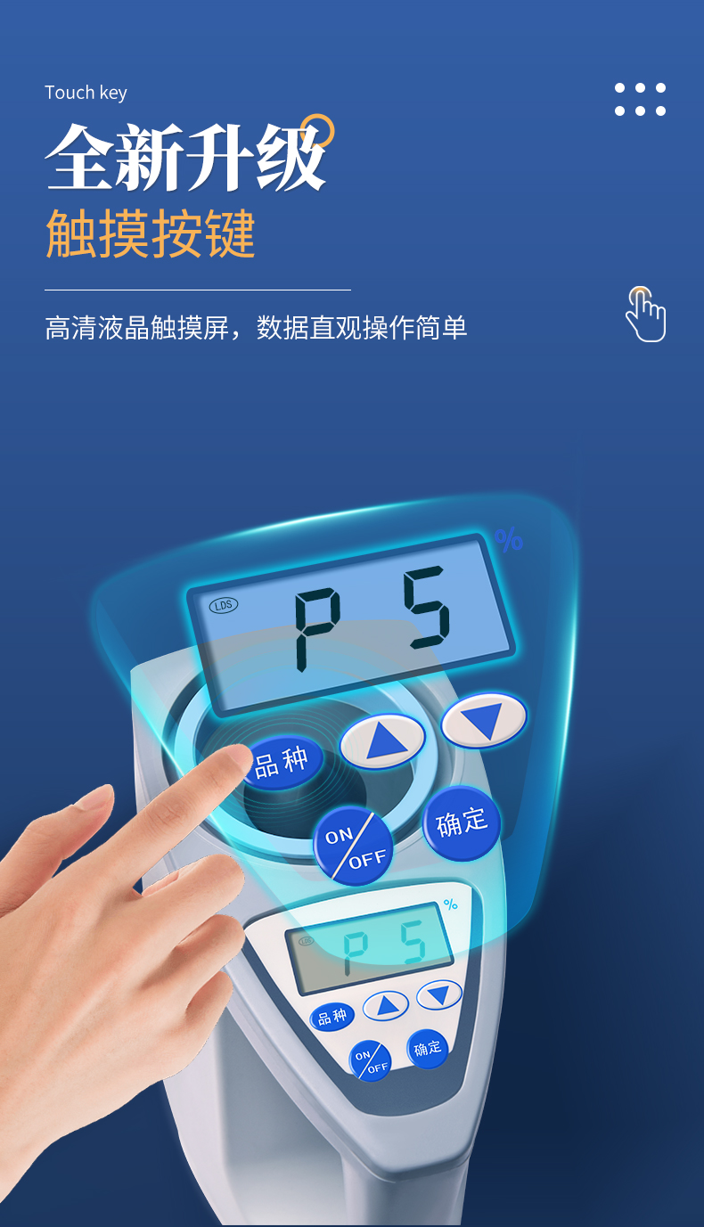 適合國情:用戶可對本地特殊品種采用本機獨創的四點定標法自行定標,自行修正水分值