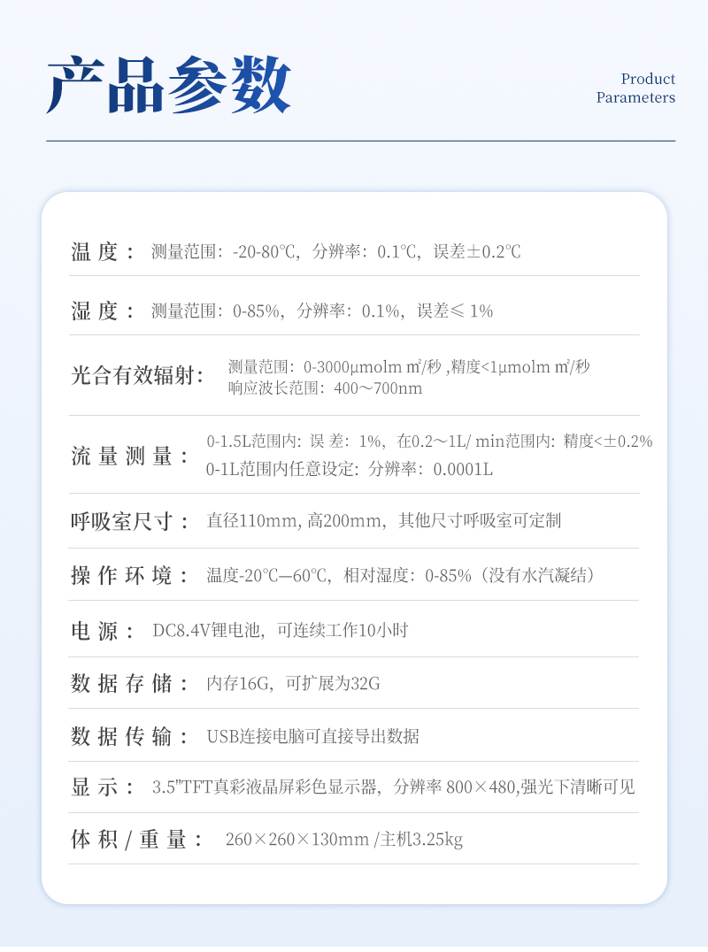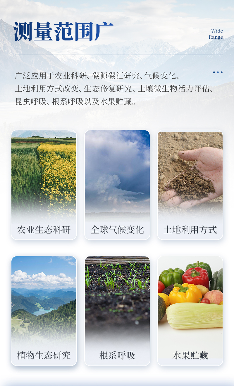 土壤呼吸是土壤生態(tài)系統(tǒng)碳素循環(huán)的一個重要過程,是土壤碳素同化異化平衡作用的結(jié)果,也是碳素由陸地生態(tài)系統(tǒng)返回大氣的主要途徑,是土壤中生命活動的表征,準確測定其釋放量是評價生態(tài)系統(tǒng)中生物學過程的關鍵;通過對土壤呼吸及其相關參數(shù)的監(jiān)測,可估測根系和土壤微生物對氣候變化的響應。土壤CO2通量在時間和空間上受多種復雜物理和生物過程影響,長期、連續(xù)、準確的測量土壤碳通量,對陸地生態(tài)系統(tǒng)碳通量研究具有重要的意義。土壤呼吸測定儀可以同時顯示呼吸室內(nèi)部的CO2濃度、溫度和濕度變化以及外部光合有效輻射強度。廣泛應用于農(nóng)業(yè)生態(tài)科研、碳源碳匯研究、全球氣候變化、土地利用方式改變、生態(tài)修復研究、土壤微生物活力評估、植物生態(tài)研究、昆蟲呼吸、根系呼吸以及水果貯藏。
