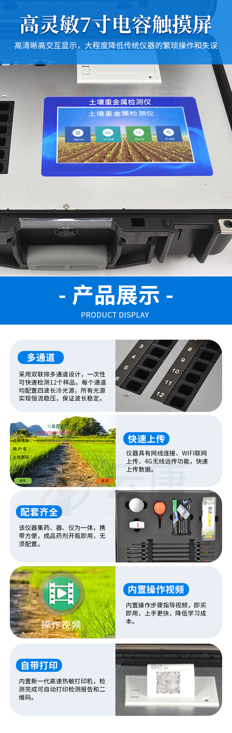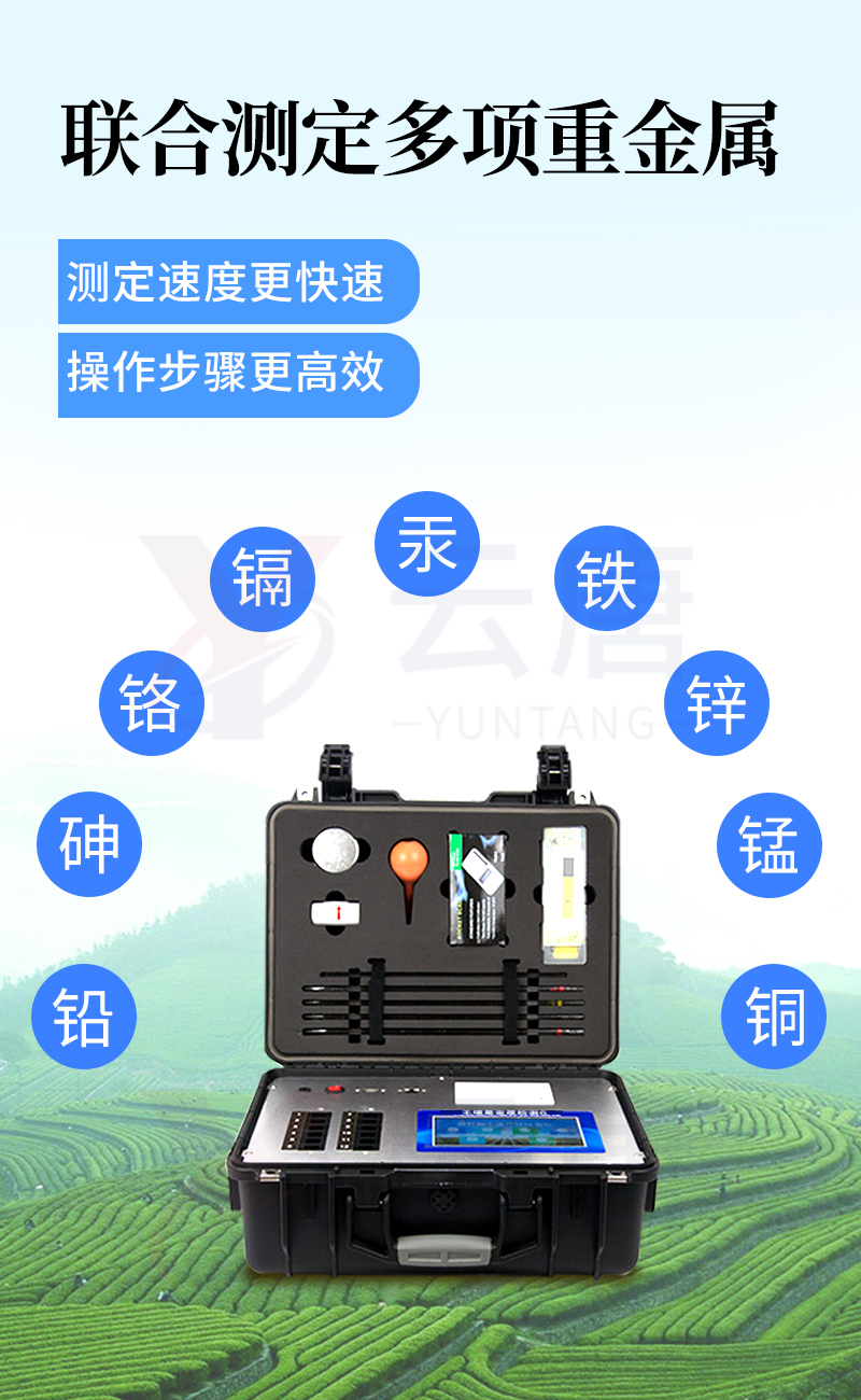 可對土壤、肥料、作物、蔬菜、水果、水質、食品等樣品中的砷、鉛、鎘、鉻、汞、鐵、鋁、鋅、錳、銅等進行快速聯合測定。