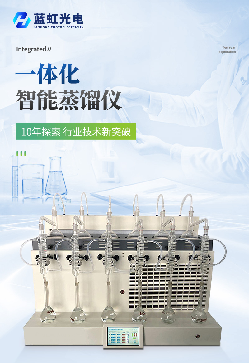 智能一體化蒸餾儀是根據實驗室蒸餾預處理操作規程,集恒溫加熱、蒸餾終點自動控制、冷卻水循環于一體的新型智能蒸餾處理裝置。